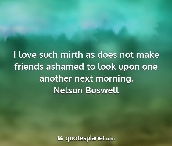 I love such mirth as does not make friends ashamed to look upon one another next morning.Nelson Boswell