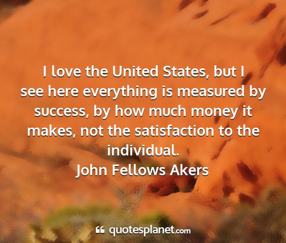 I love the United States, but I see here everything is measured by success, by how much money it makes, not the satisfaction to the individual.John Fellows Akers