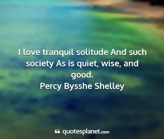 I love tranquil solitude And such society As is quiet, wise, and good.