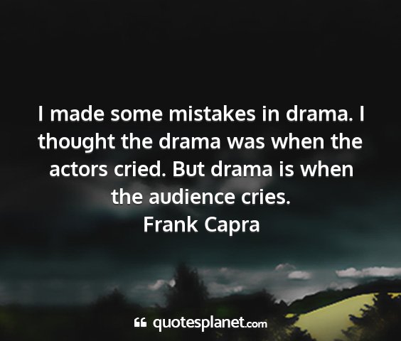 I made some mistakes in drama. I thought the drama was when the actors cried. But drama is when the audience cries.Frank Capra