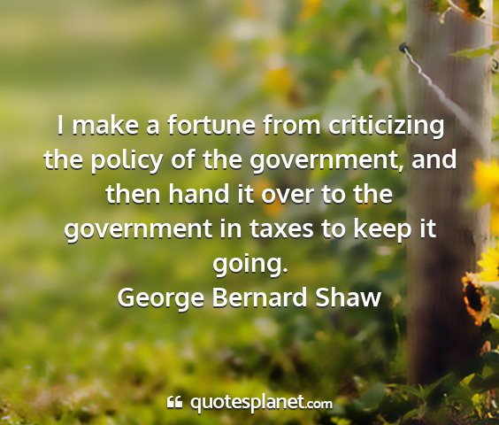 I make a fortune from criticizing the policy of the government, and then hand it over to the government in taxes to keep it going.George Bernard Shaw