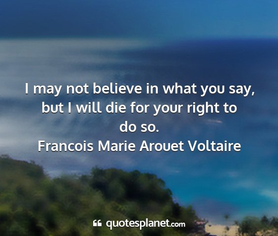 I may not believe in what you say, but I will die for your right to do so.Francois Marie Arouet Voltaire