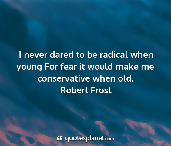 I never dared to be radical when young For fear it would make me conservative when old.