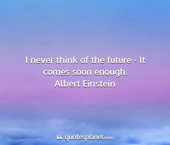 I never think of the future - It comes soon enough.