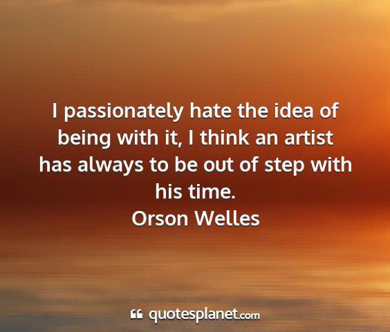 I passionately hate the idea of being with it, I think an artist has always to be out of step with his time.Orson Welles