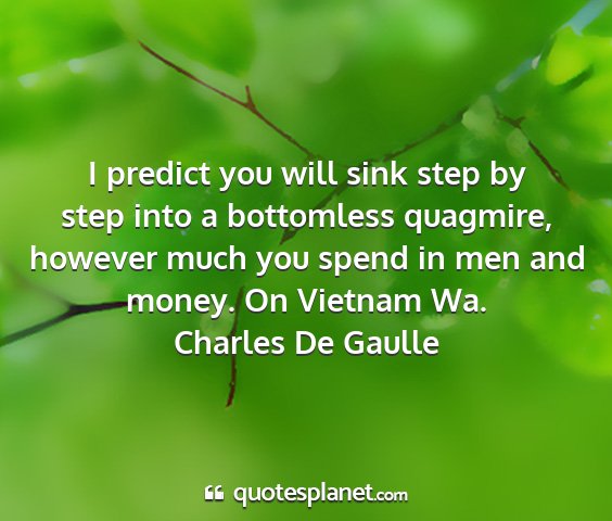 I predict you will sink step by step into a bottomless quagmire, however much you spend in men and money. On Vietnam Wa.Charles De Gaulle