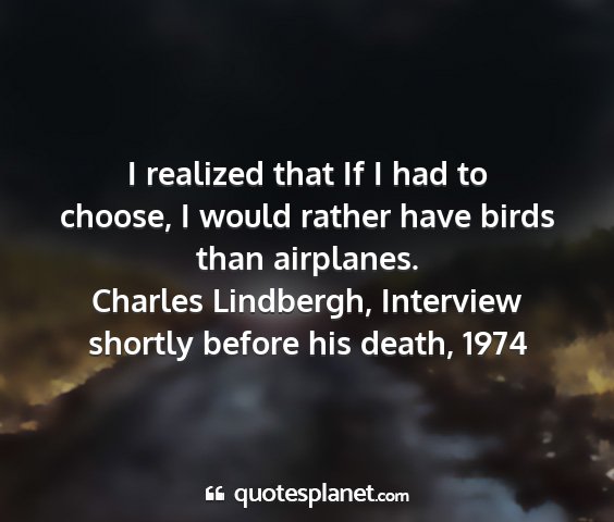 I realized that If I had to choose, I would rather have birds than airplanes.Charles Lindbergh, Interview shortly before his death, 1974