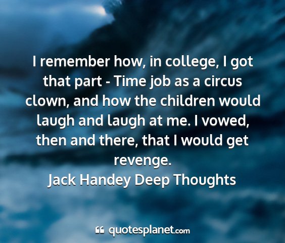 I remember how, in college, I got that part - Time job as a circus clown, and how the children would laugh and laugh at me. I vowed, then and there, that I would get revenge.Jack Handey Deep Thoughts