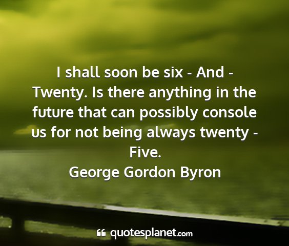 I shall soon be six - And - Twenty. Is there anything in the future that can possibly console us for not being always twenty - Five.George Gordon Byron