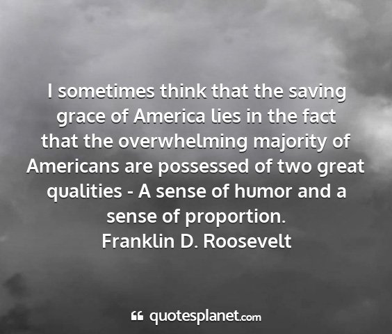 I sometimes think that the saving grace of America lies in the fact that the overwhelming majority of Americans are possessed of two great qualities - A sense of humor and a sense of proportion.Franklin D. Roosevelt
