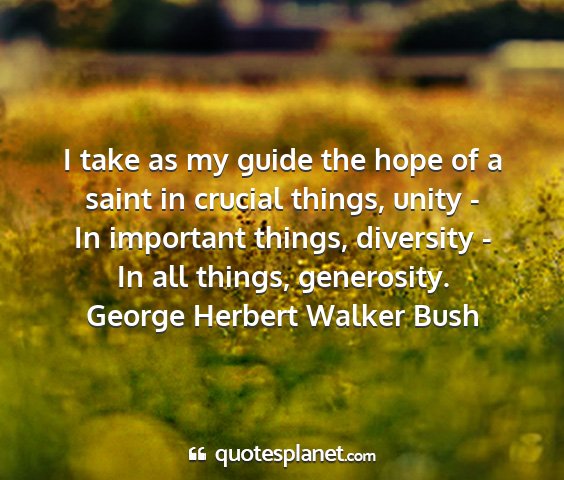I take as my guide the hope of a saint in crucial things, unity - In important things, diversity - In all things, generosity.George Herbert Walker Bush