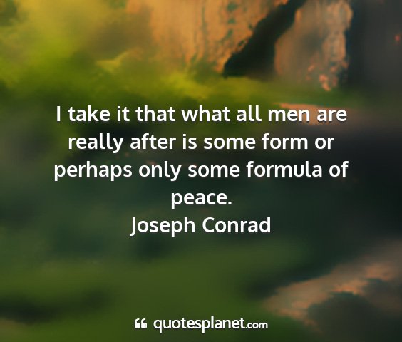 I take it that what all men are really after is some form or perhaps only some formula of peace.Joseph Conrad