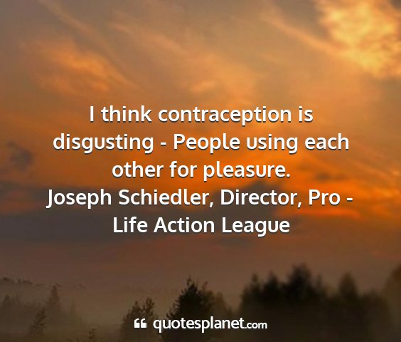 I think contraception is disgusting - People using each other for pleasure.Joseph Schiedler, Director, Pro - Life Action League