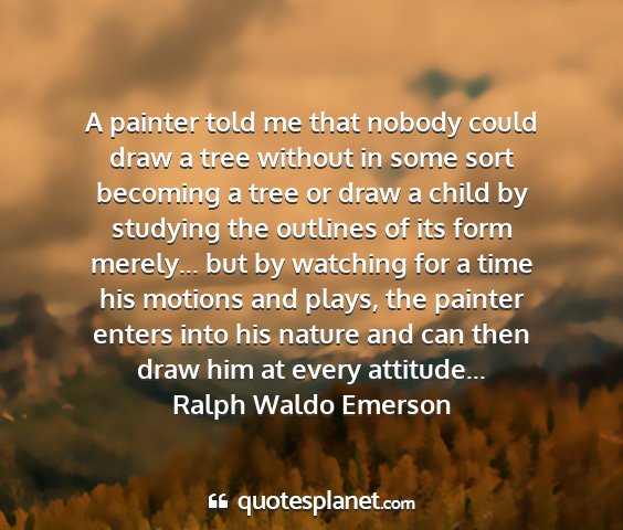 A painter told me that nobody could draw a tree without in some sort becoming a tree or draw a child by studying the outlines of its form merely... but by watching for a time his motions and plays, the painter enters into his nature and can then draw him at every attitude...Ralph Waldo Emerson