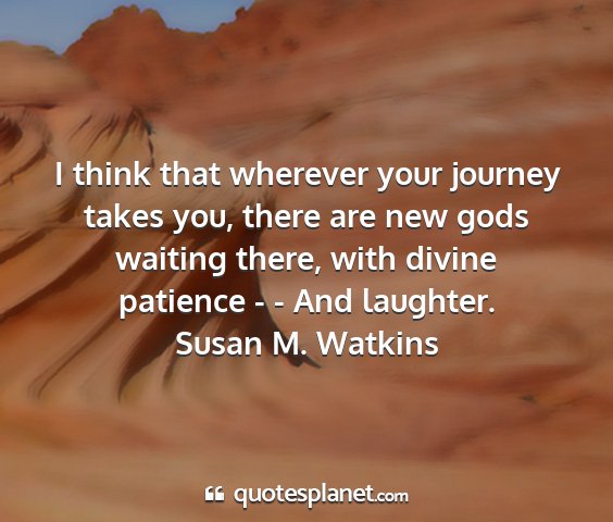 I think that wherever your journey takes you, there are new gods waiting there, with divine patience - - And laughter.Susan M. Watkins