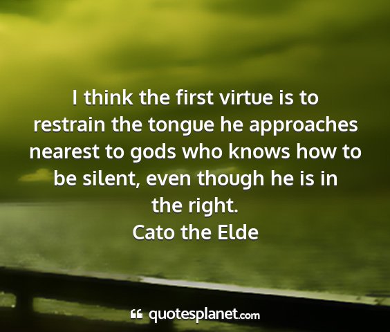 I think the first virtue is to restrain the tongue he approaches nearest to gods who knows how to be silent, even though he is in the right.Cato the Elde