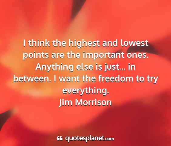 I think the highest and lowest points are the important ones. Anything else is just... in between. I want the freedom to try everything.Jim Morrison