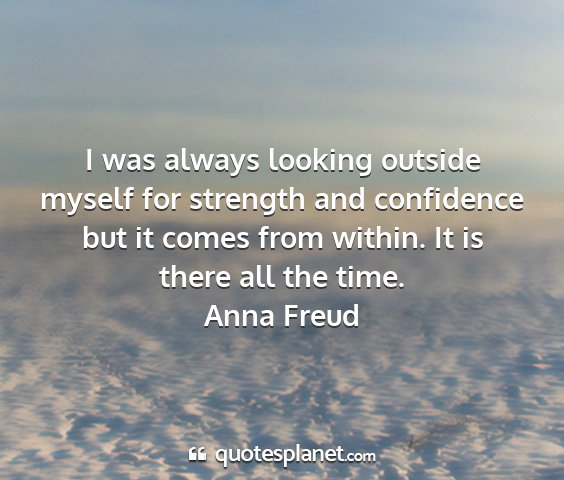 I was always looking outside myself for strength and confidence but it comes from within. It is there all the time.Anna Freud