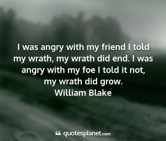 I was angry with my friend I told my wrath, my wrath did end. I was angry with my foe I told it not, my wrath did grow.William Blake