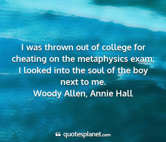 I was thrown out of college for cheating on the metaphysics exam; I looked into the soul of the boy next to me.Woody Allen, Annie Hall