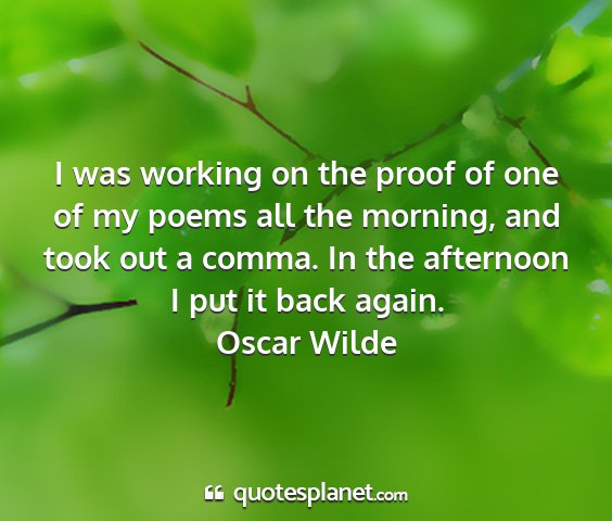 I was working on the proof of one of my poems all the morning, and took out a comma. In the afternoon I put it back again.Oscar Wilde