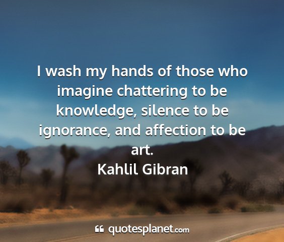 I wash my hands of those who imagine chattering to be knowledge, silence to be ignorance, and affection to be art.Kahlil Gibran