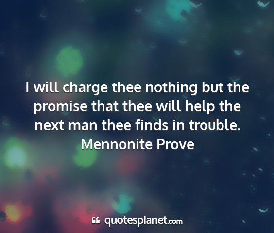 I will charge thee nothing but the promise that thee will help the next man thee finds in trouble.Mennonite Prove