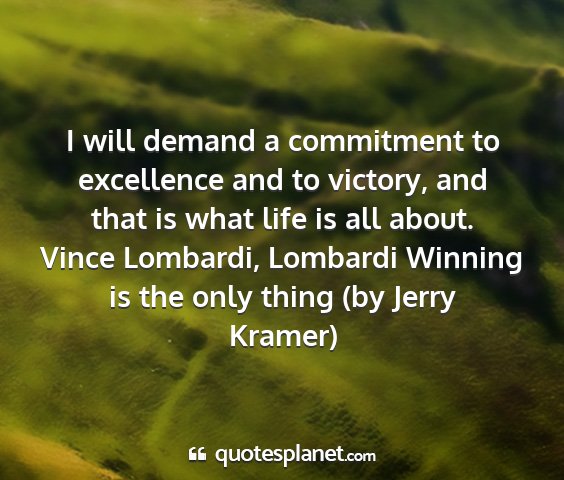 I will demand a commitment to excellence and to victory, and that is what life is all about.Vince Lombardi, Lombardi Winning is the only thing (by Jerry Kramer)