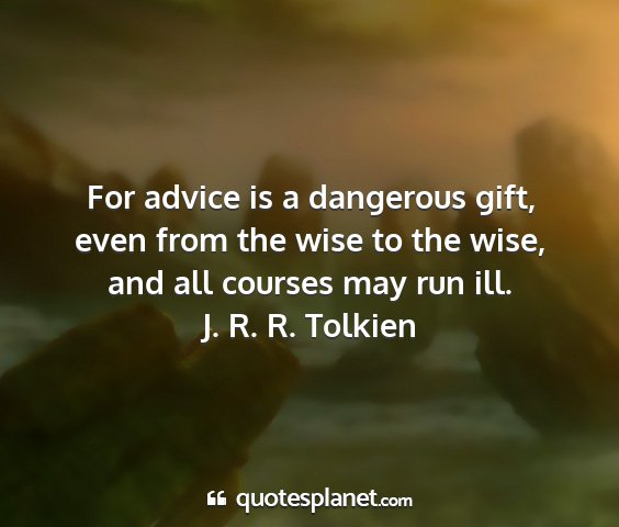 For advice is a dangerous gift, even from the wise to the wise, and all courses may run ill.J. R. R. Tolkien