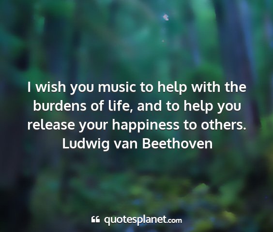I wish you music to help with the burdens of life, and to help you release your happiness to others.Ludwig van Beethoven