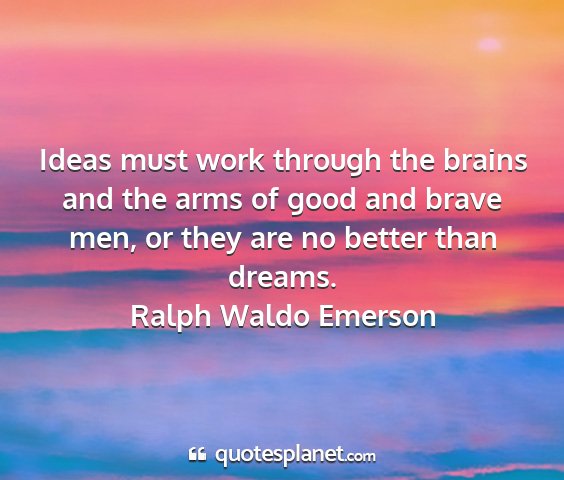 Ideas must work through the brains and the arms of good and brave men, or they are no better than dreams.Ralph Waldo Emerson