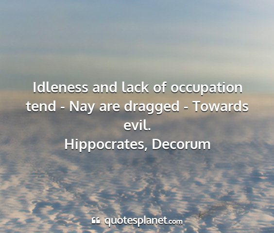 Idleness and lack of occupation tend - Nay are dragged - Towards evil.