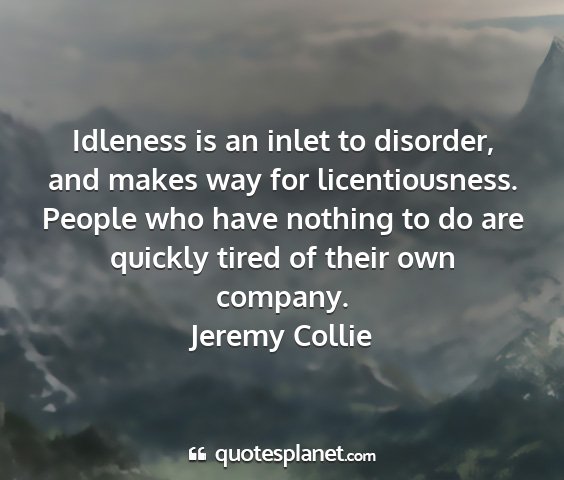 Idleness is an inlet to disorder, and makes way for licentiousness. People who have nothing to do are quickly tired of their own company.Jeremy Collie