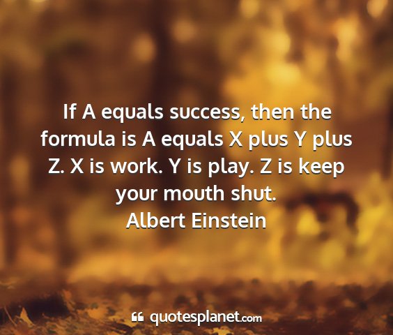 If A equals success, then the formula is A equals X plus Y plus Z. X is work. Y is play. Z is keep your mouth shut.Albert Einstein