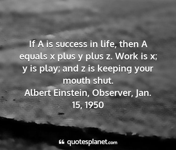 If A is success in life, then A equals x plus y plus z. Work is x; y is play; and z is keeping your mouth shut.Albert Einstein, Observer, Jan. 15, 1950