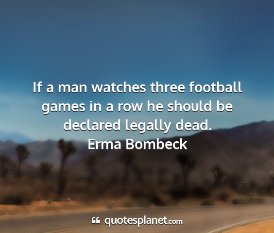 If a man watches three football games in a row he should be declared legally dead.