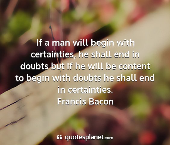 If a man will begin with certainties, he shall end in doubts but if he will be content to begin with doubts he shall end in certainties.Francis Bacon