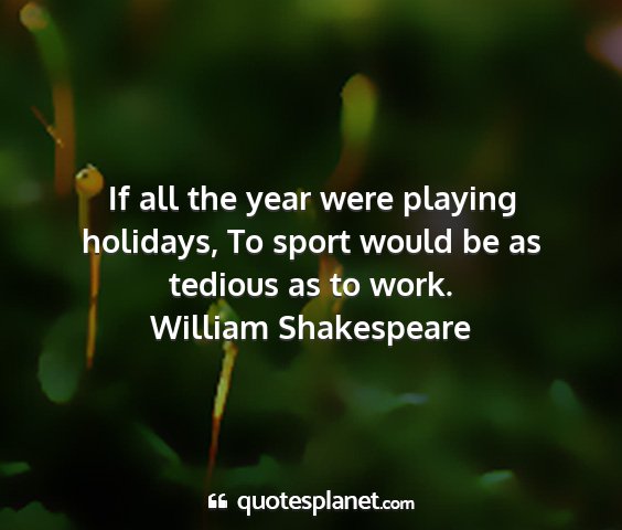 If all the year were playing holidays, To sport would be as tedious as to work.