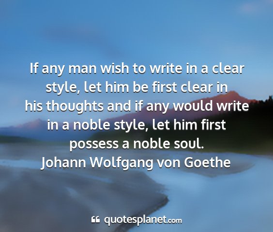 If any man wish to write in a clear style, let him be first clear in his thoughts and if any would write in a noble style, let him first possess a noble soul.Johann Wolfgang von Goethe