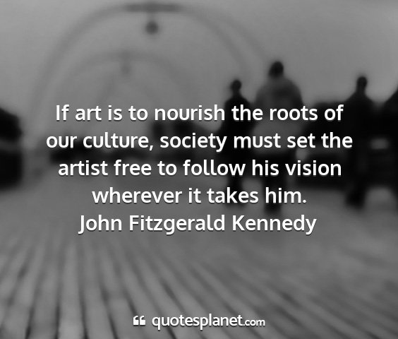 If art is to nourish the roots of our culture, society must set the artist free to follow his vision wherever it takes him.John Fitzgerald Kennedy