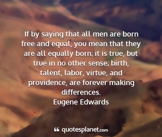 If by saying that all men are born free and equal, you mean that they are all equally born; it is true, but true in no other sense; birth, talent, labor, virtue, and providence, are forever making differences.Eugene Edwards