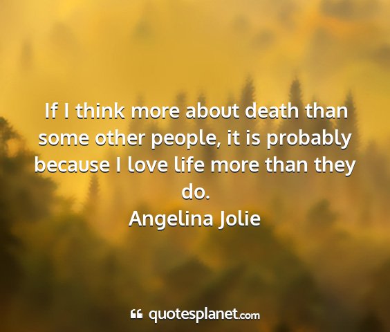If I think more about death than some other people, it is probably because I love life more than they do.Angelina Jolie