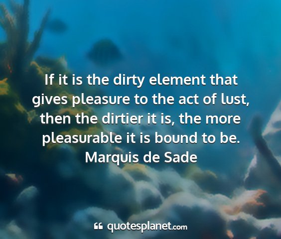 If it is the dirty element that gives pleasure to the act of lust, then the dirtier it is, the more pleasurable it is bound to be.Marquis de Sade