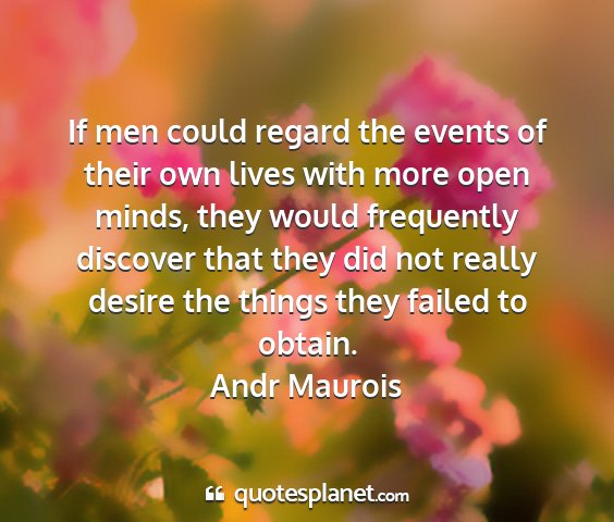 If men could regard the events of their own lives with more open minds, they would frequently discover that they did not really desire the things they failed to obtain.Andr Maurois