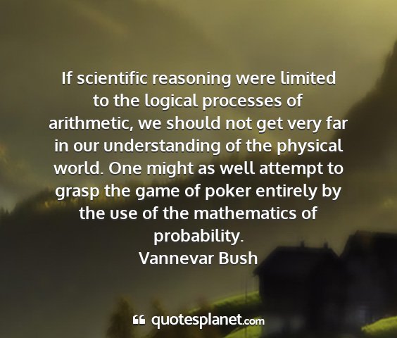 If scientific reasoning were limited to the logical processes of arithmetic, we should not get very far in our understanding of the physical world. One might as well attempt to grasp the game of poker entirely by the use of the mathematics of probability.Vannevar Bush