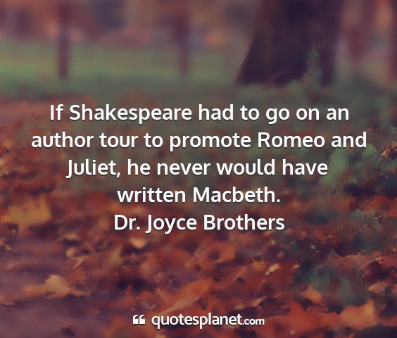 If Shakespeare had to go on an author tour to promote Romeo and Juliet, he never would have written Macbeth.Dr. Joyce Brothers