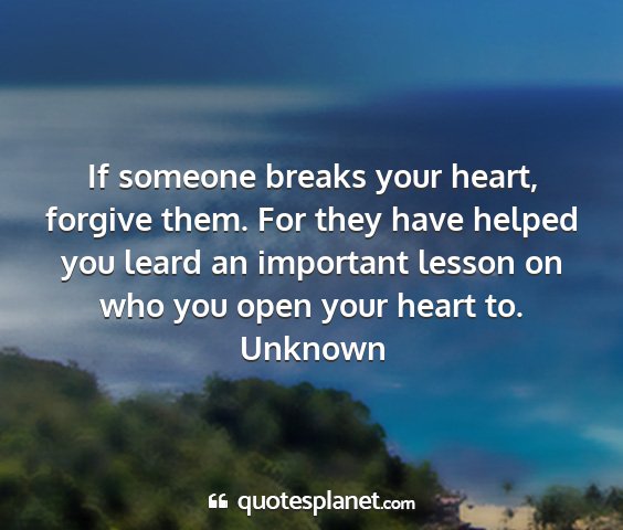 If someone breaks your heart, forgive them. For they have helped you leard an important lesson on who you open your heart to.Unknown
