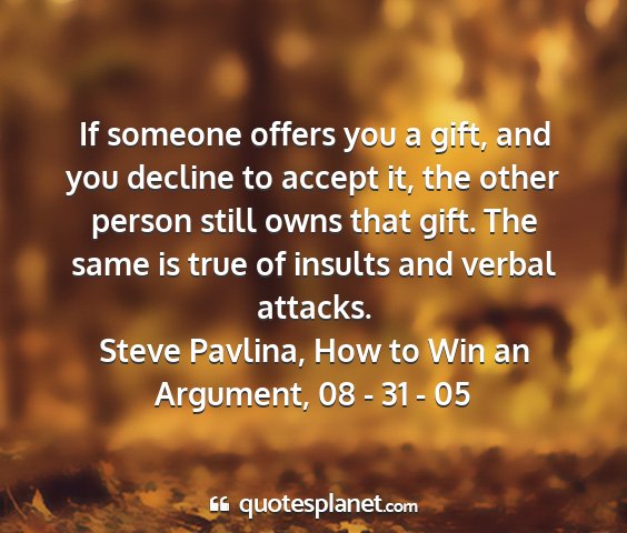 If someone offers you a gift, and you decline to accept it, the other person still owns that gift. The same is true of insults and verbal attacks.Steve Pavlina, How to Win an Argument, 08 - 31 - 05