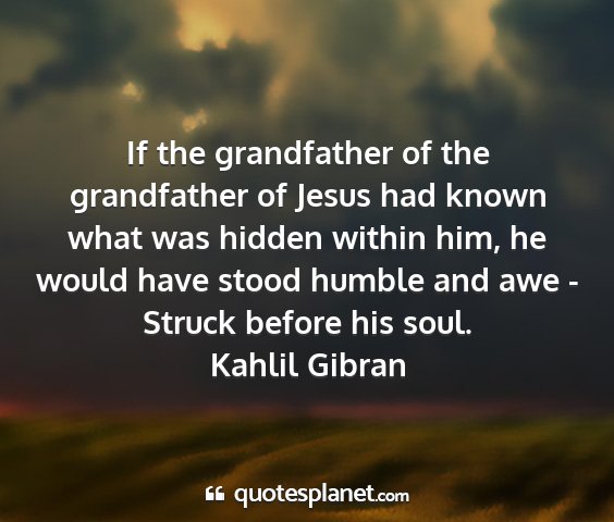 If the grandfather of the grandfather of Jesus had known what was hidden within him, he would have stood humble and awe - Struck before his soul.Kahlil Gibran