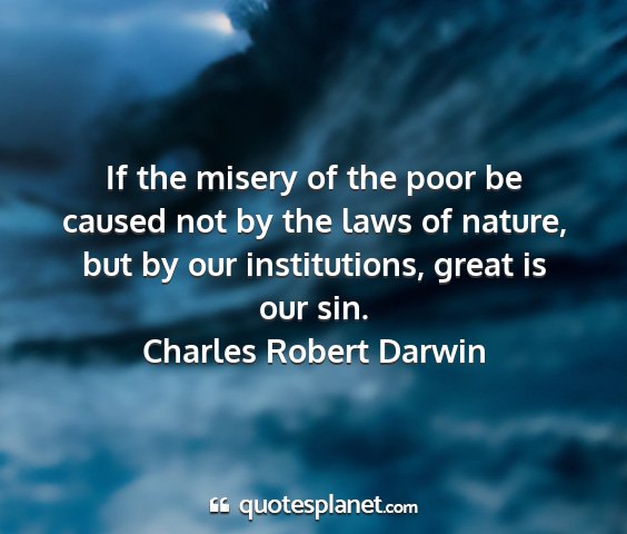 If the misery of the poor be caused not by the laws of nature, but by our institutions, great is our sin.Charles Robert Darwin
